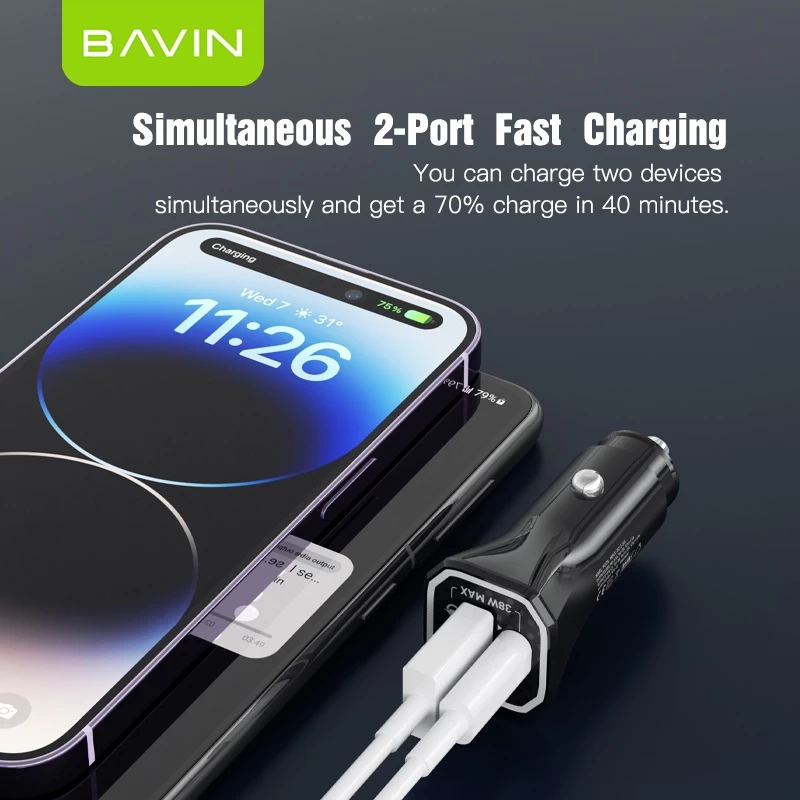 Bavin auto punjač PD20W QC3.0 USB-A + USB-C crna - PC875BK