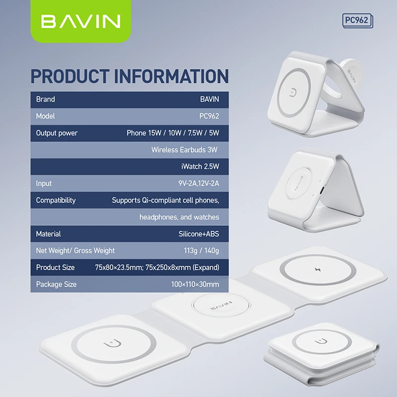 Bavin bežični punjač 3u1 Magnetic bela - PC962