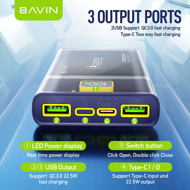 Bavin Power bank 10 000mAh 22.5W - PC002 crna
