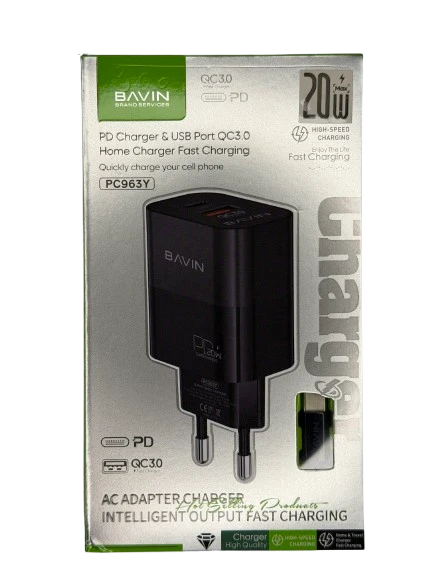 Bavin punjač 20W PD Usb A/Type C + kabl C-C PC963Y-CC crna