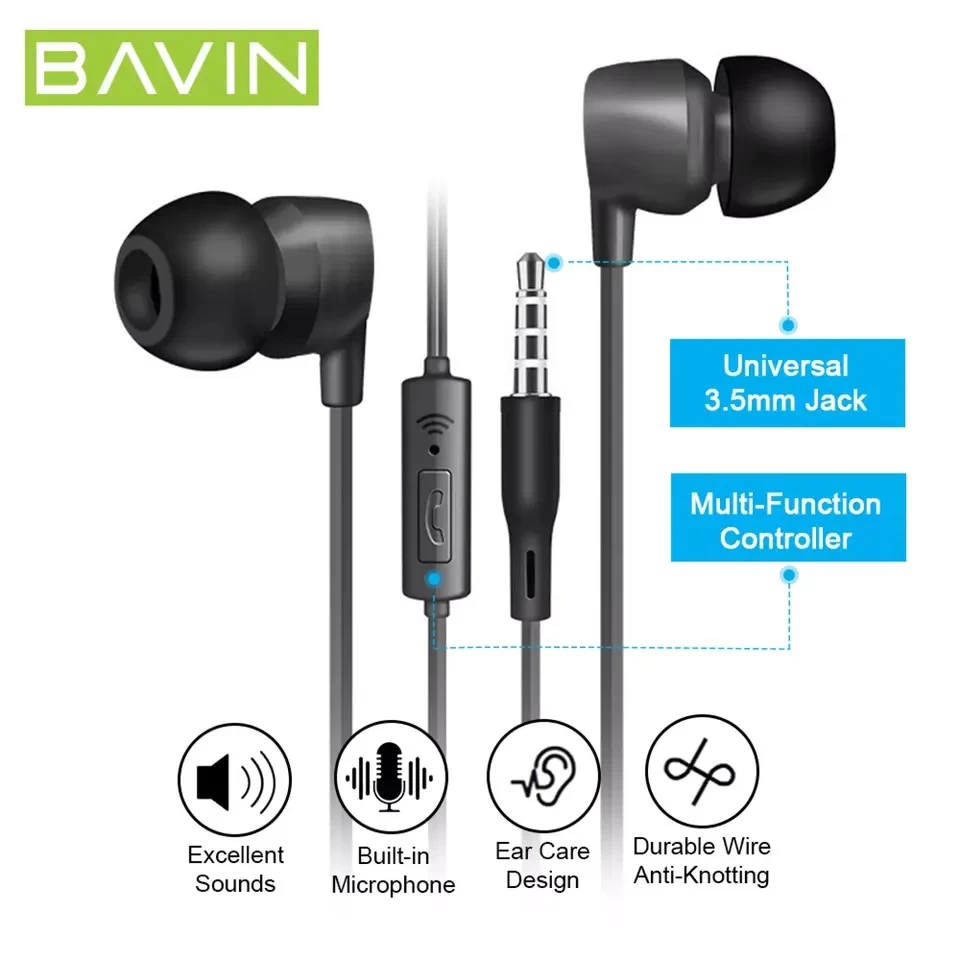 BAVIN slušalice 3,5mm 1,2m crna - HX851